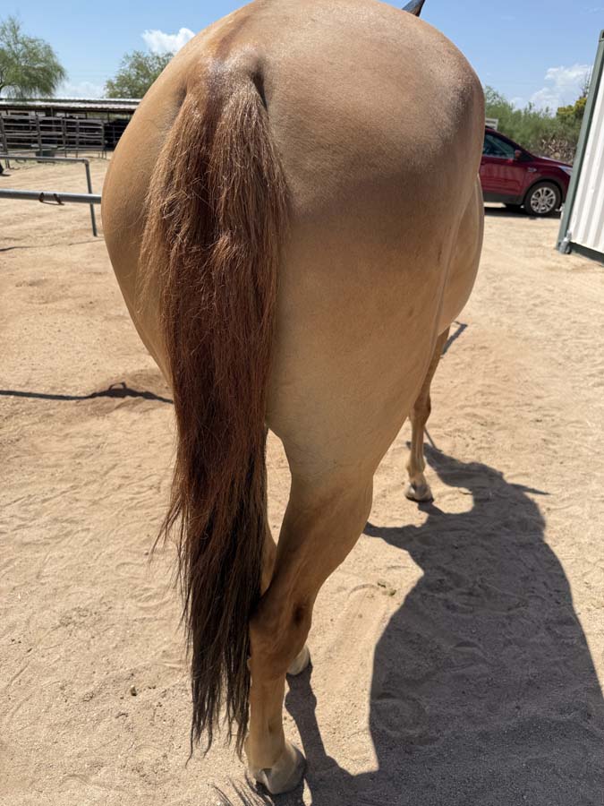 When I purchased a young Quarter Horse I intended to make my trail horse, I was told he was a red dun. I had no clue what that meant! His name is Exuma, for the islands in The Bahamas (nicknamed Xumie). He is a gorgeous light caramel color with a dark red dorsal stripe down his back. People often praise me for his ‘clipping,’ but he’s naturally smooth and sleek!